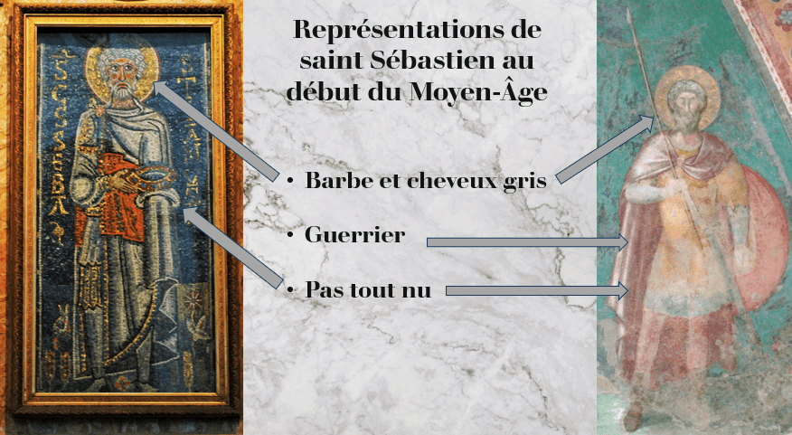 Surtout que le VRAI saint Sébastien, celui qui est mort en martyr au 3e siècle, c’tait même pas un beau jeune homme tout nu : c’tait un monsieur d’âge mûr qui travaillait comme centurion dans l’armée romaine.