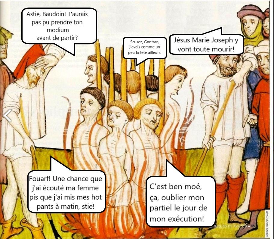Y’en a qui avouèrent, mais qui se rétractèrent après, faique Philippe le Bel les condamna toute au bûcher.