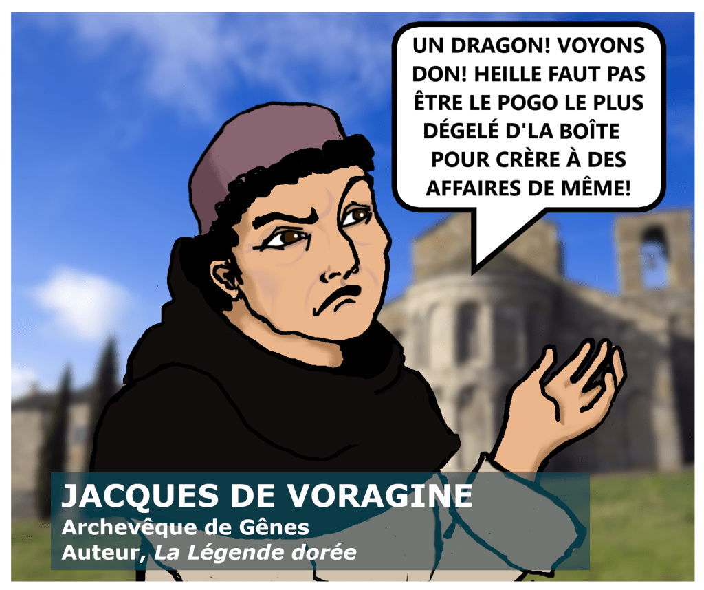 Mais quand y’arrive au dragon à sainte Marguerite d’Antioche, Jacques écrit :