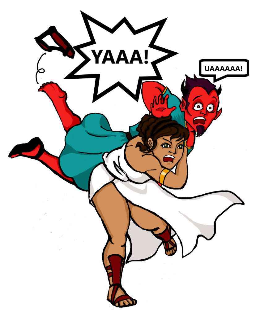 Le prince des démons l’savait pas, mais y’avait fait une erreur fatale en s’approchant trop proche de Marguerite : a le pogna par la tête pis le câlissa à terre avec une technique d’amené au sol digne de Georges Saint-Pierre.