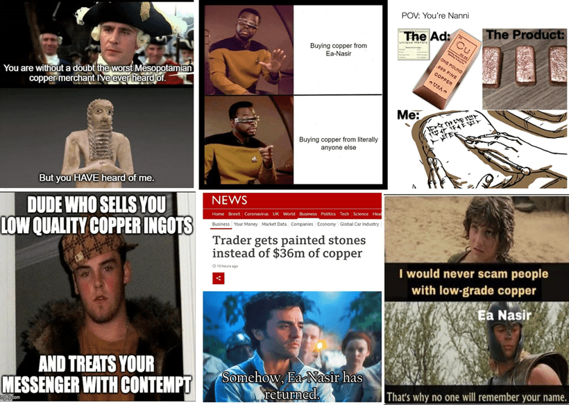 Vous m’creyez pas? On va aller taper « Ea-Nasir memes » (vous connaissez ça, hein, les mèmes?) dans Google pour voir c’que ça donne :