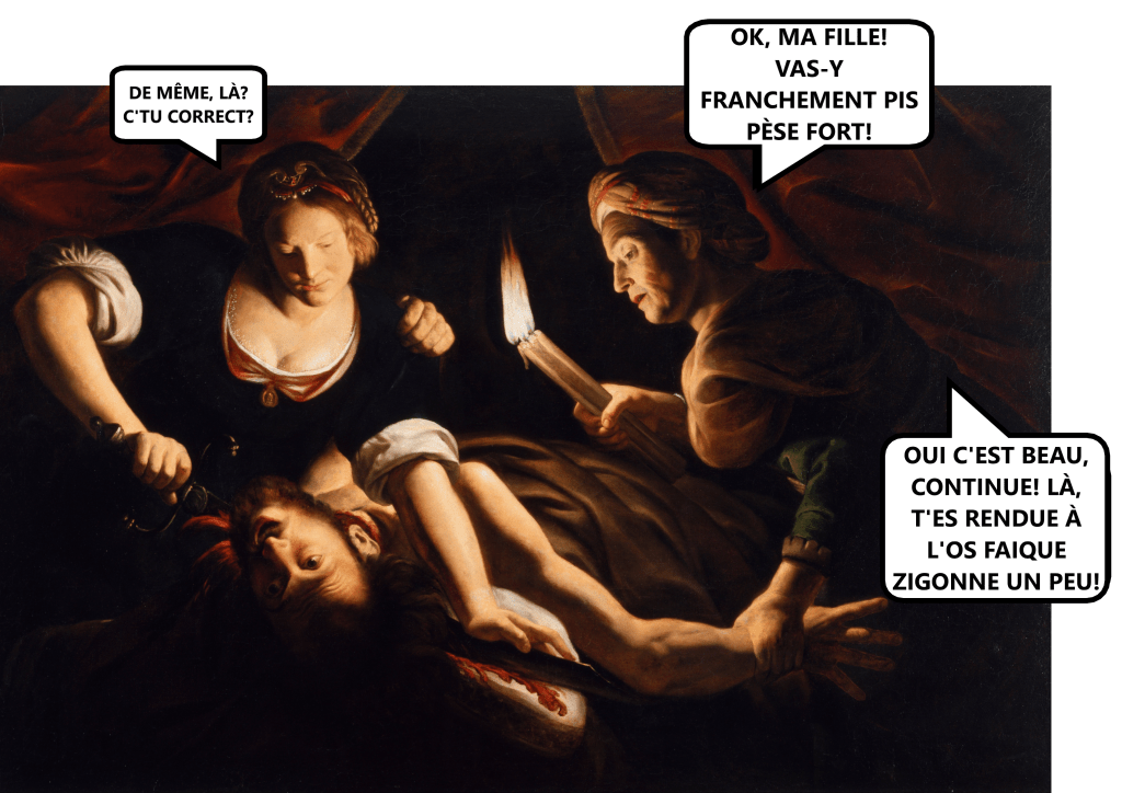 « Toé, ferme-la pis laisse-moé travailler! Vous autres! Lancez-moé une corde! »