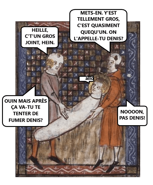 Vous l’savez, j’aime ben m’faire du fun avec les dessins pis les peintures du Moyen-Âge. Heille, comment ch’pourrais résister? L’art médiéval, c’est tellement bizarre! J’vous en ai montré en masse, depuis l’temps, mais j’vas quand même vous rafraîchir la mémoire. Argardez ça :