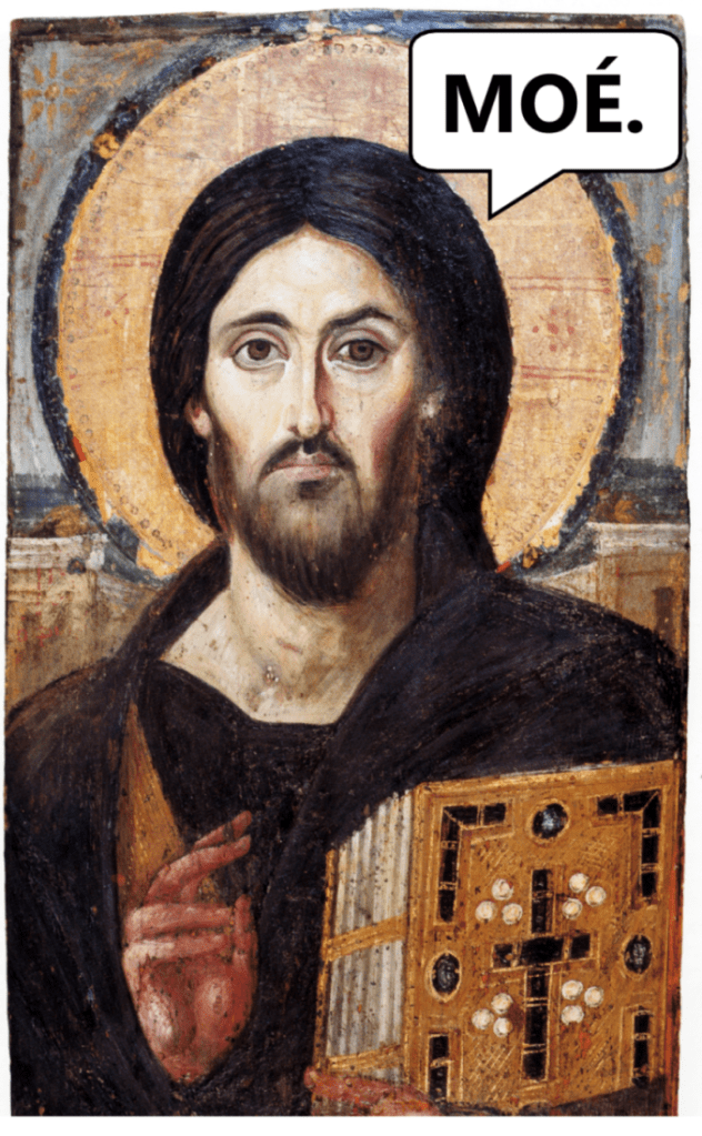 Ben oui, vous-autres : J.-C. notre Sauveur, Lumière du monde, Agneau de Dieu pis toute le kit.